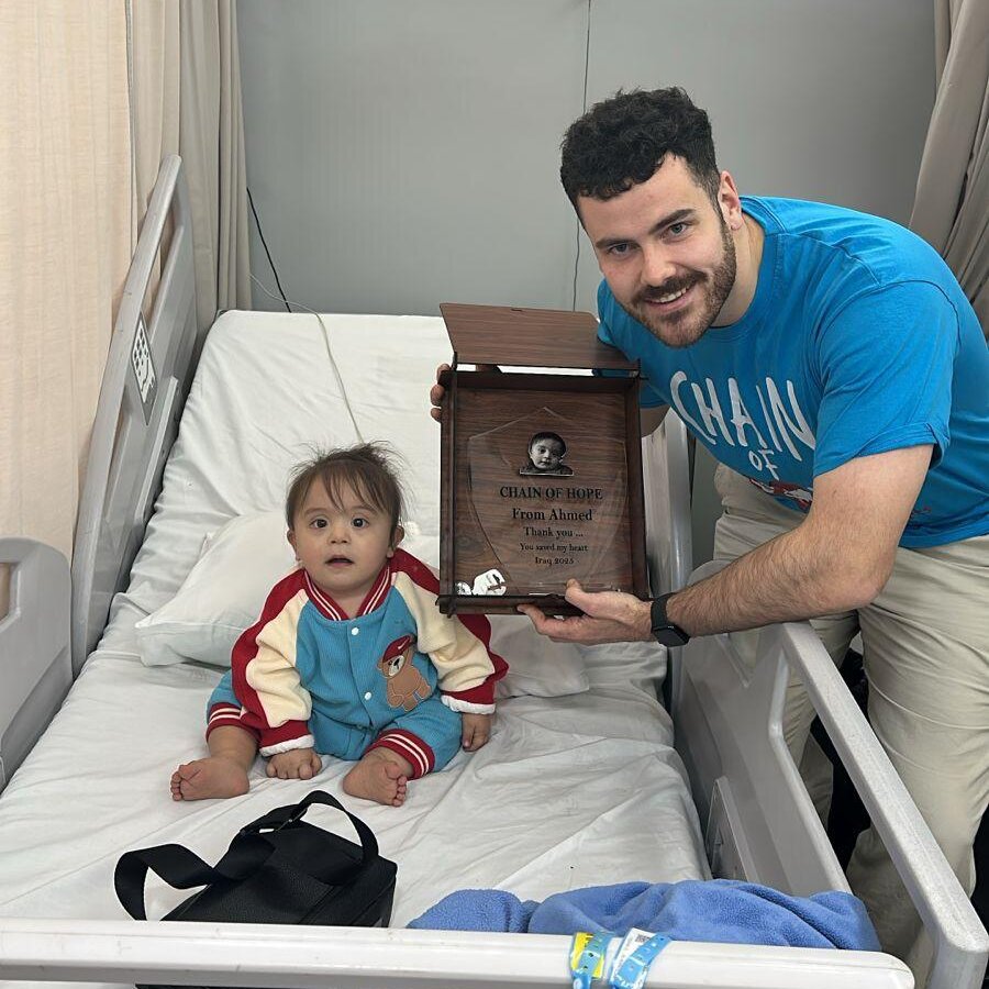 Ahmed showed just how strong he is by breathing on his own soon after surgery thanks to his healthy lungs! Ahmed made a speedy recovery at Al Khalidi Hospital and as a token of his appreciation, presented Chain of Hope with a gift! Ahmed is now back at home happy and healthy!
